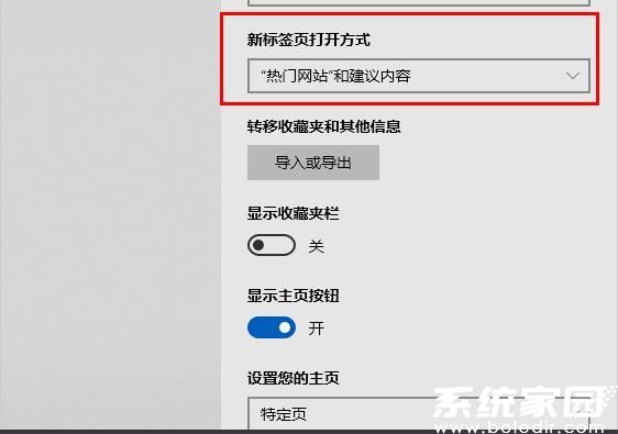 3. 定位「新标签页打开方式」选项组,展开下拉菜单选择「热门站点」模式。该模式支持用户自主管理主页显示的网站快捷方式,点击右侧的「自定义」按钮进入编辑界面。