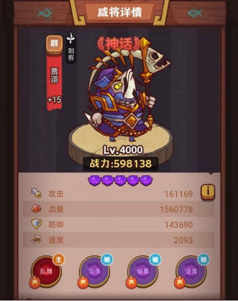 神话刺客的「毒士」被动可对目标施加攻速降低、暴击抗性削弱双重减益,专属技能「乱武」在敌方释放大招后必定触发反击效果。