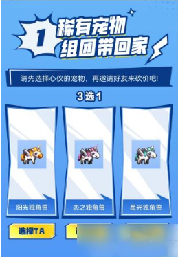 本次「稀有独角兽,组队抱回家」主题活动将持续至2024年5月20日23:59:59,参与者通过社交裂变方式完成指定任务即可免费获得限定款独角兽宠物。活动采用阶梯式砍价机制,玩家需组建助力团队共同达成目标。