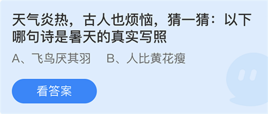 正确选项是飞鸟厌其羽。此句出自北宋诗人梅尧臣《和蔡仲谋苦热》,全诗以夸张手法表现酷暑难耐:"大热曝万物,万物不可逃。燥者欲出火,液者欲流膏。飞鸟厌其羽,走兽厌其毛..."。诗中"飞鸟厌其羽"的意象极具画面感——烈日炙烤下,连鸟类都嫌弃自身羽毛带来的闷热,这种拟人化描写将炎夏的煎熬表现得淋漓尽致,与杜甫"永日不可暮,炎蒸毒我肠"等诗句形成跨时空的意境呼应。
