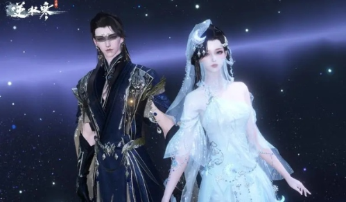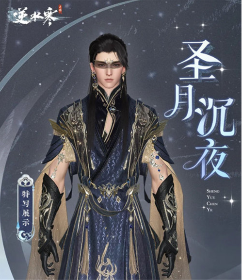 女性角色专属的圣月澄空套装采用银白主色调设计,搭配半透明星纱材质打造出流动光效,头饰部分创新运用月光粒子特效,行走间可触发星辰轨迹特效。男性专属的圣月沉夜套装则以深邃夜空蓝为基底,运用鎏金刺绣工艺勾勒出星轨纹样,肩部设计融入动态星云特效。